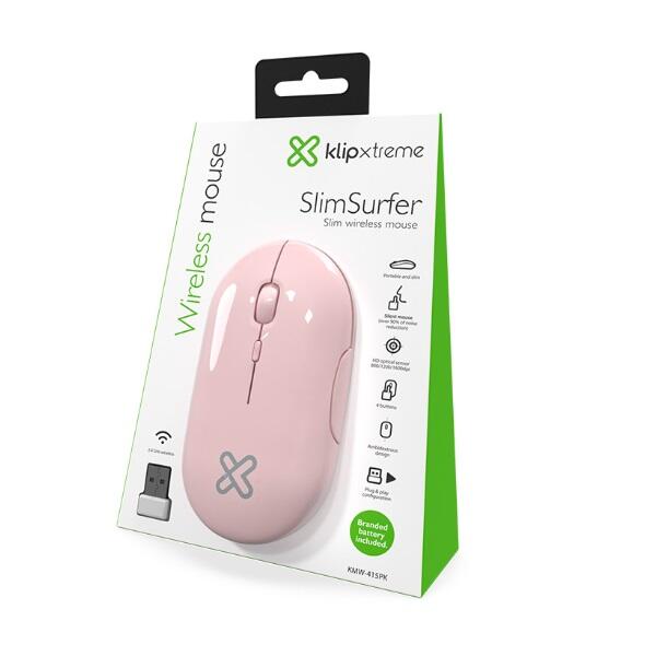 Klip Xtreme - Mouse - 2.4 GHz - Wireless - Pink - Slim