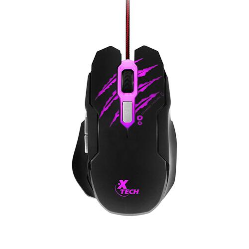 Mouse para Gaming Xtech XTM-610 Lethal Haze - Resolución ajustable de hasta 3200 ppp - Luces LED de 4 colores - Cable sin enredos - para juegos 3D de 6 botones - Sensor: Óptico - Botones: 6 - Iluminado: Sí - Longitud del cable: 5,2 pies, trenzado
