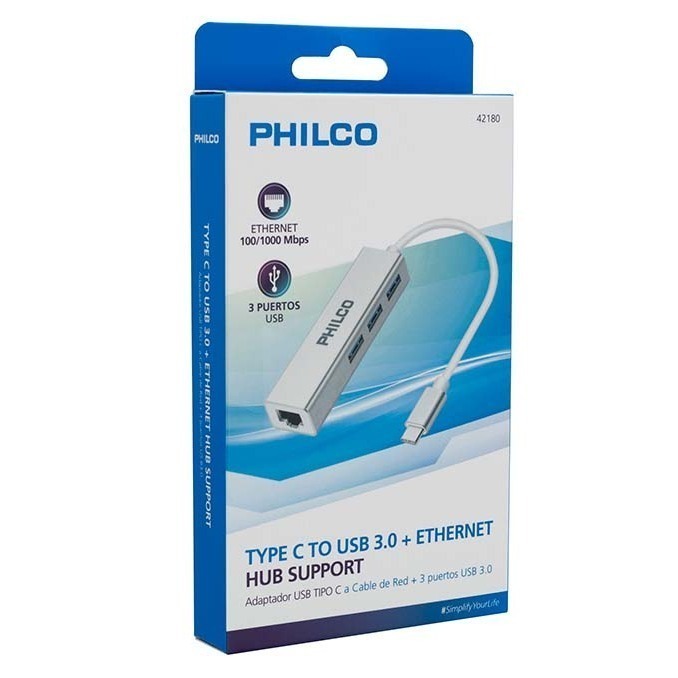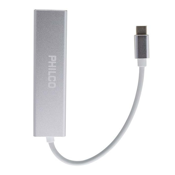 Hub USB-C Philco, 3 Puertos USB 3.0, Puerto RJ45 Gigabit Ethernet